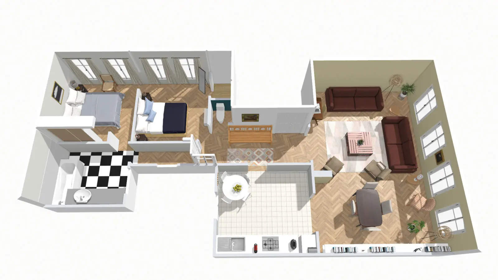 The kitchen is fully equipped to meet even the most demanding needs, while the bathroom, with its bathtub, ensures a special moment of relaxation.