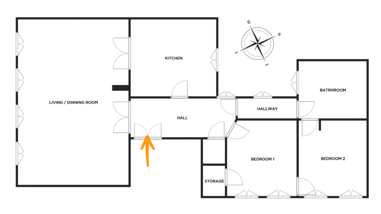 A corridor leads to the apartment’s rooms, including an elegant wooden banquette.