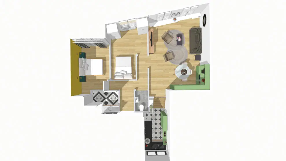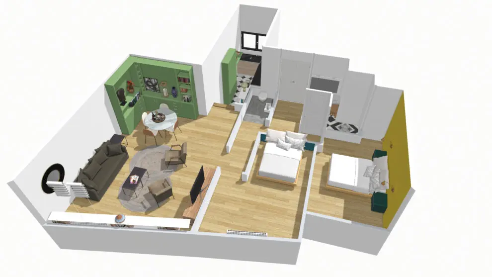 For everyone’s harmony and comfort, the apartment has a shower room and a separate toilet.