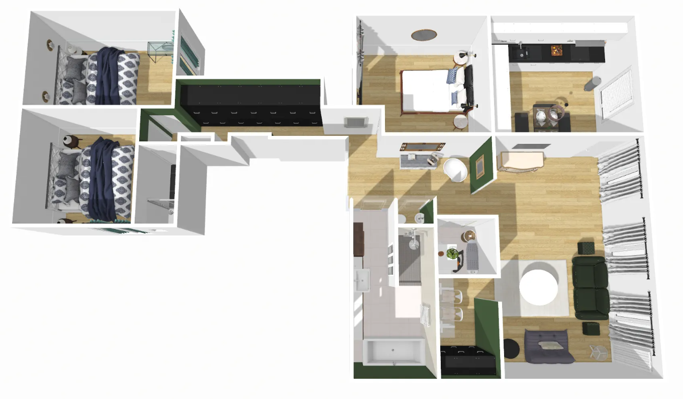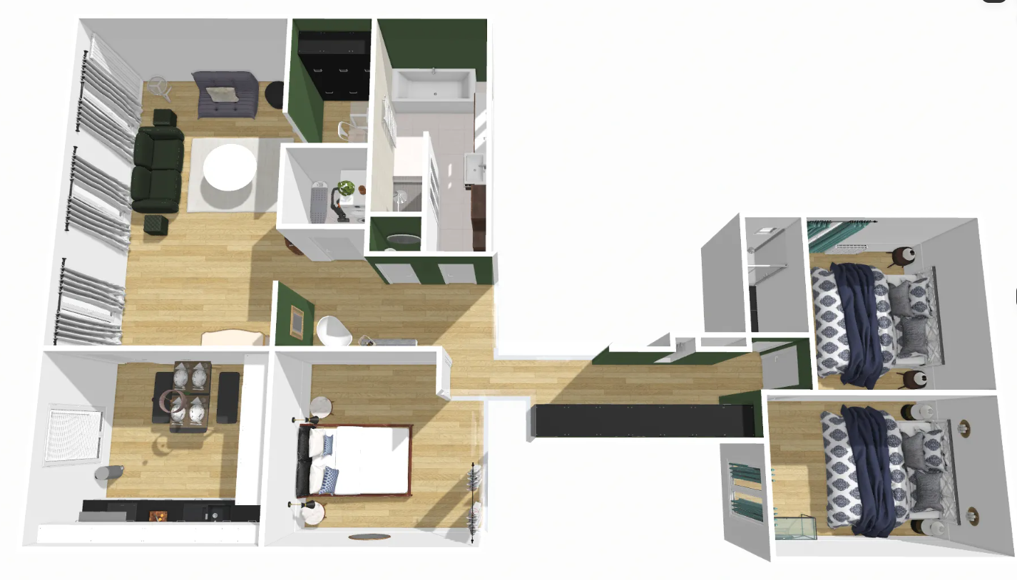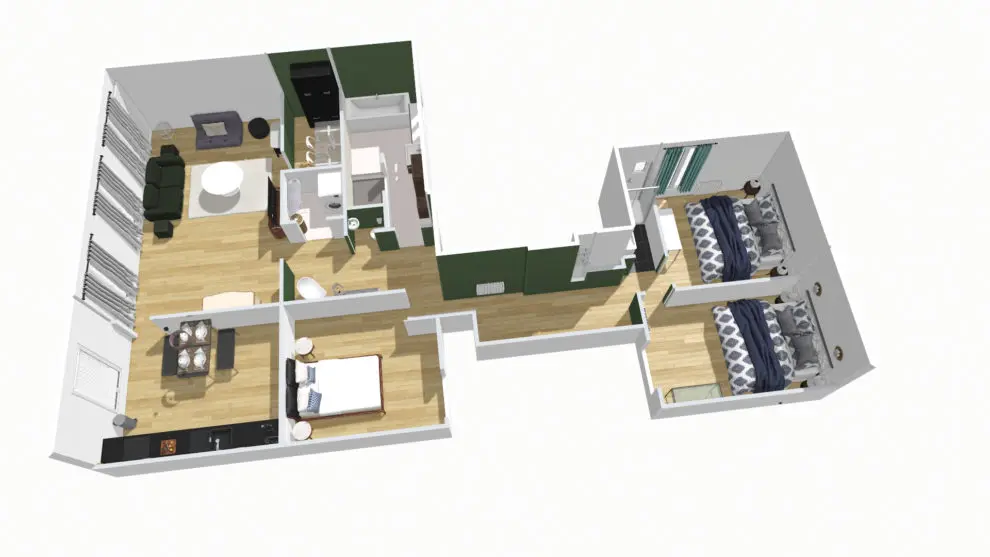 Back at the entrance of the apartment on the left are located the three bedrooms of the apartment.