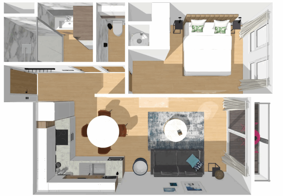 Entièrement meublé avec goût et équipé de tout le nécessaire, cet appartement récemment construit offre un cadre chaleureux et accueillant. La lumière naturelle entre grâce à la grande baie vitrée, mettant en valeur chaque recoin de ce cocon urbain.