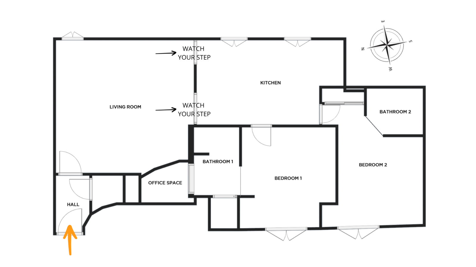 Un second toilette séparé se trouve à l’entrée, avant le séjour.