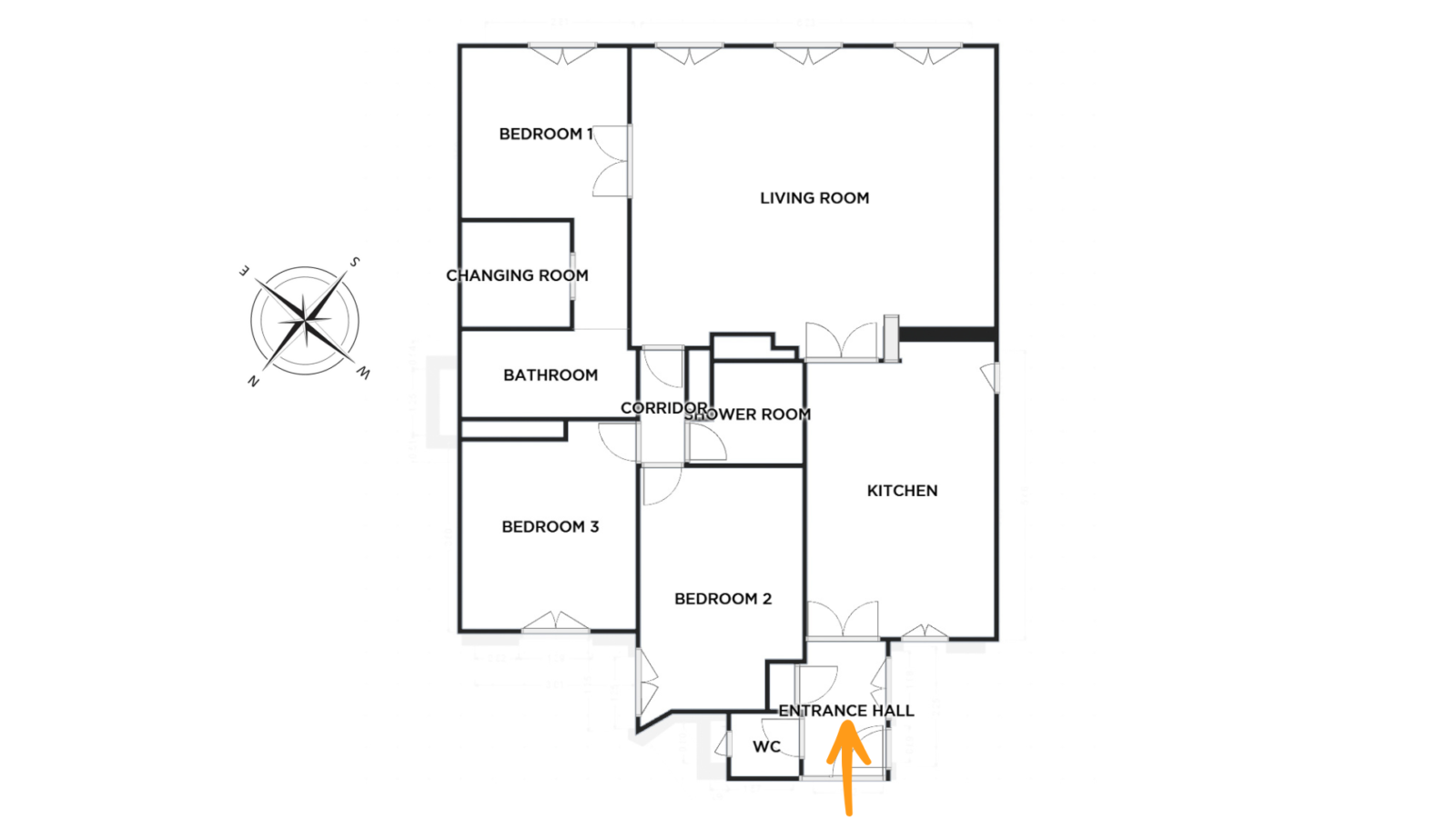 Les deux autres chambres avec des lits en 160x200cm et 140x190cm, partagent une salle de douche sans toilettes, le toilette est séparé et se trouve à l’entrée de l’appartement.